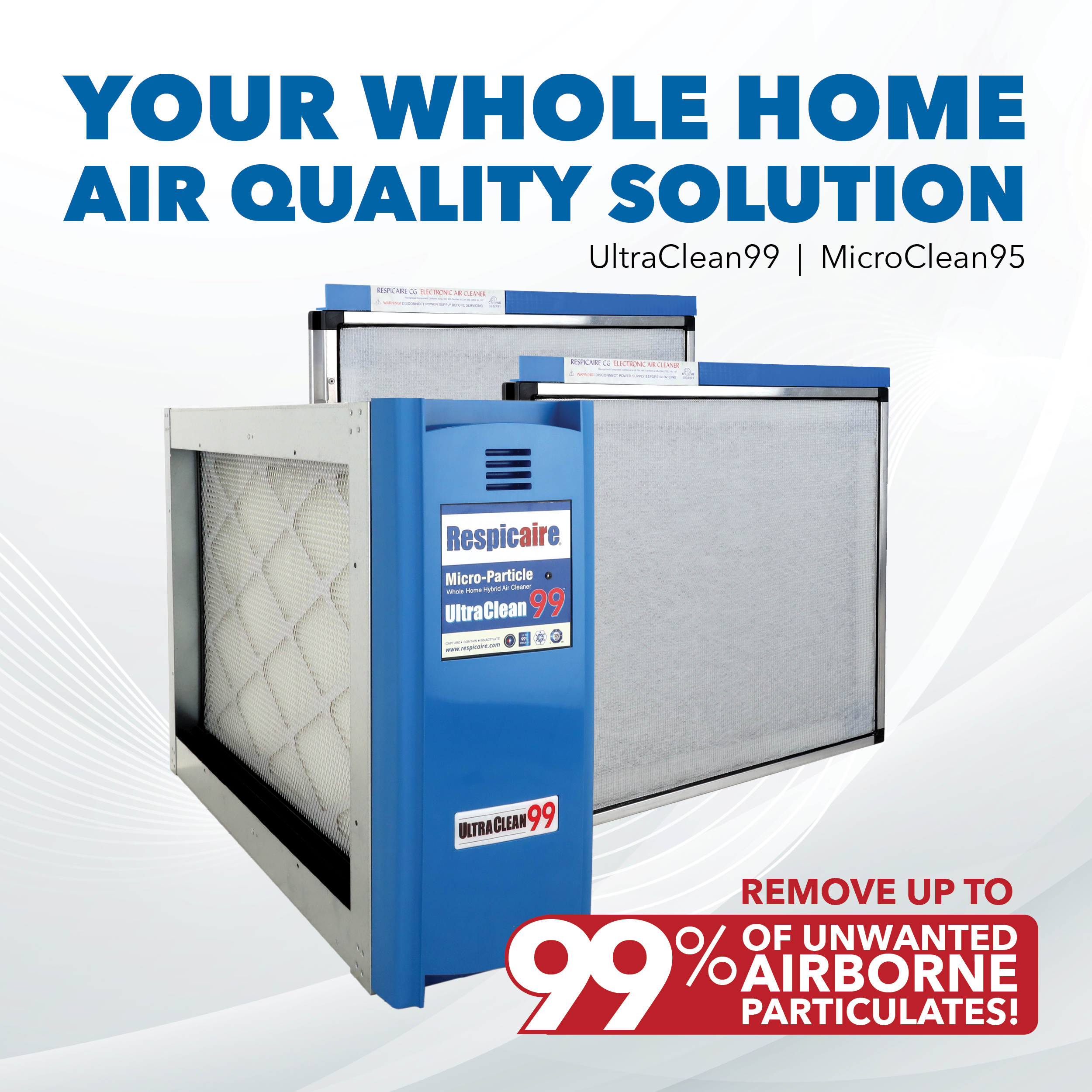 sets a new standard for indoor air quality efficiency. The UC 99™ is an ideal solution for homes with central heating & cooling systems featuring 99% Micro-particle efficiency rating on the most troublesome airborne contaminants: Pollen, Dust, Mold Spores, Dander, Virus and more. If you suffer from Asthma, Allergies, Compromised Immune System, COPD & other Respiratory Issues, the UltraClean 99™ is your best & affordable in-line filtration system for your home. The UC 99™ filters 100% of your indoor air every time it passes through your central heating and cooling system.